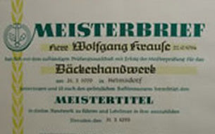 Damals übernahm mein Großvater Herbert Krause mit 27 Jahren eine bestehende Bäckerei, nachdem er erfolgreich seine Ausbildung zum Bäckergesellen und 1949 den "Meister im Bäckerhandwerk" absolvierte. Mein Vater hatte sich sich entschlossen, ebenfalls den Beruf der Bäckers zu ergreifen und so stieg auch er in die Familientradition ein. Er übernahm am 1.9.1979 die Bäckerei.